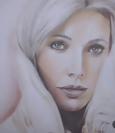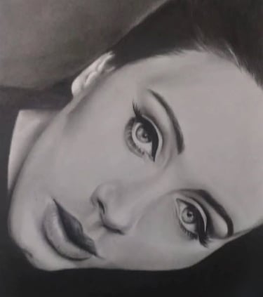 Nesta obra, Sheila Martins atinge o ápice do acabamento aveludado. Ao retratar a cantora Adele, a técnica de sfumato é aplicada com perfeição para criar as transições suaves de sombra no rosto, destacando o contorno clássico e a profundidade do olhar magnético da artista. A precisão no desenho dos cílios e o volume impecável dos lábios capturam a sofisticação e a melancolia característica de Adele, transformando o papel em uma peça de pura elegância.