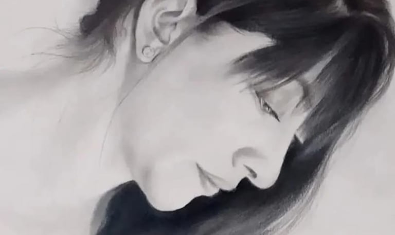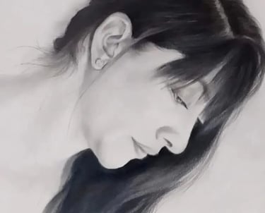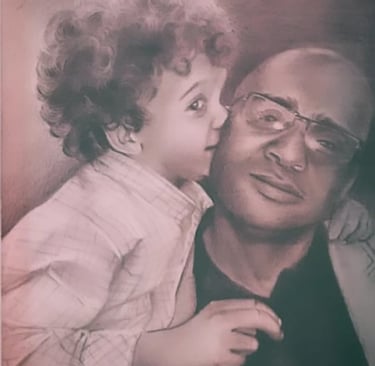 "A Força da Expressão: Desenho realista em Grafite/Carvão. Capturando a alma e a alegria em altíssima excelência."